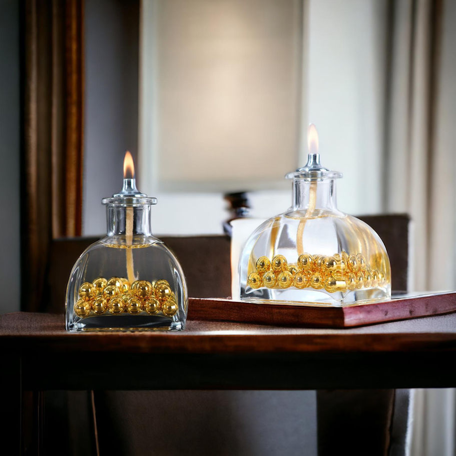 Evinize antik ve asil bir hava katın! Piramit şekilli cam şişeler içerisinde, altın renkli inci taneleriyle süslenmiş, tekrar doldurulabilir yapıda dekoratif kandil mumlarımız, mekanınıza zengin ve lüks bir dokunuş katacak. Her bir mum, evinizin ambiyansını yükseltmek için özenle tasarlanmıştır.